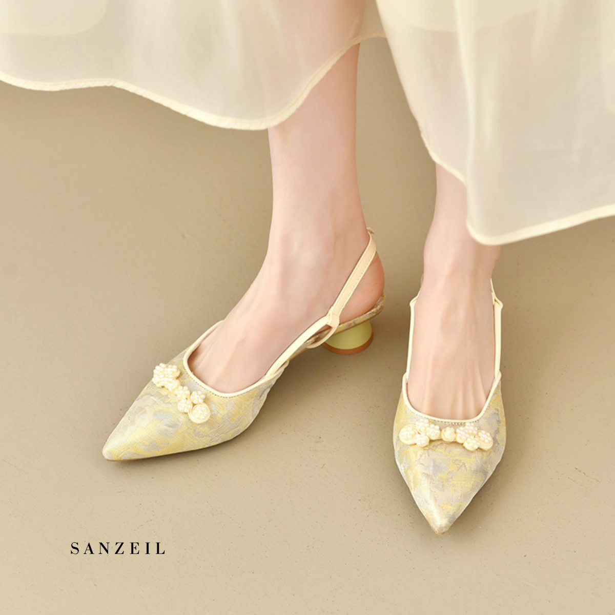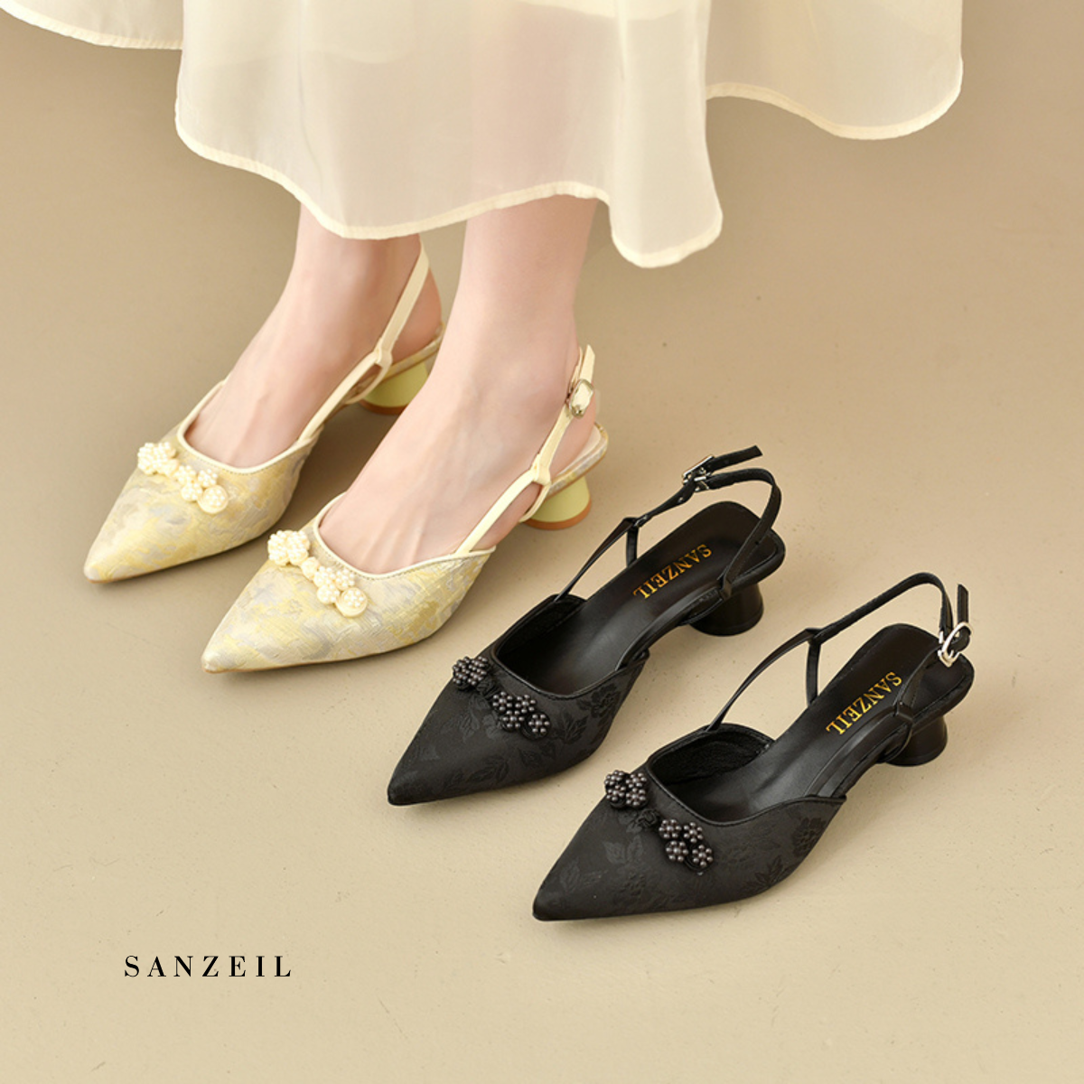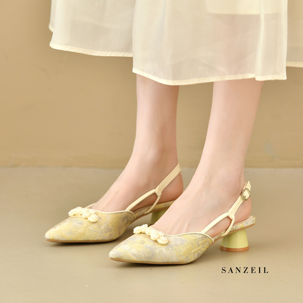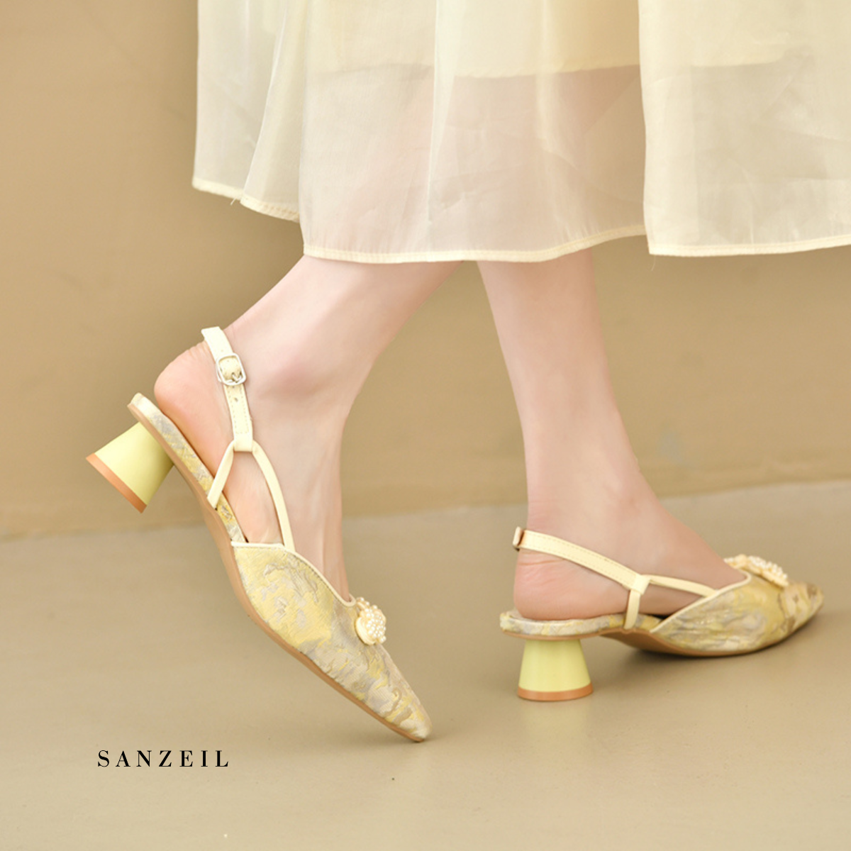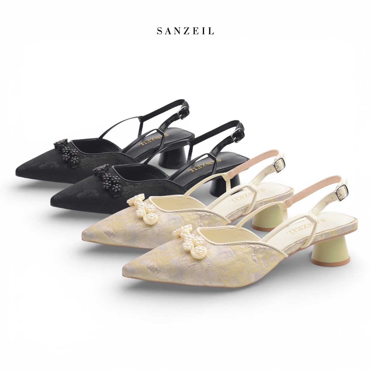 Dari bahan Kanvas Bermotif Premium serta jahitan rapi. Desain mewah Heels Da Hye siap untuk menemani setiap langkahmu.