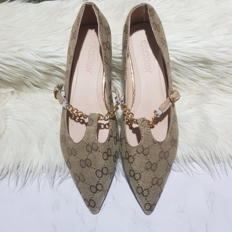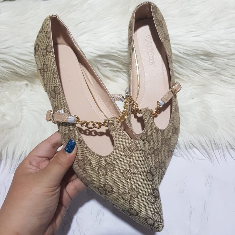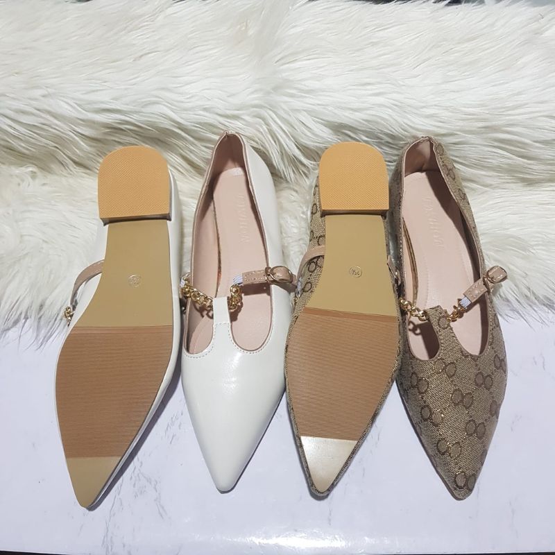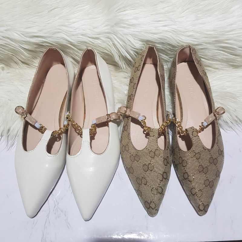 Sepatu Wanita Pointed-Toe Ballet Slip On Shoes